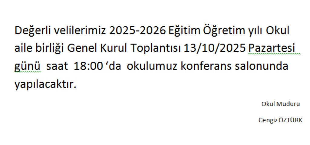 31.10.2024 tarihinde saaat:18:00 da okul aile birliği toplamtısı yapılacaktır.